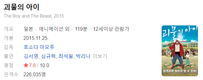 <괴물의 아이> 영화는 네이버 평점 10점 만점에 8.73으로